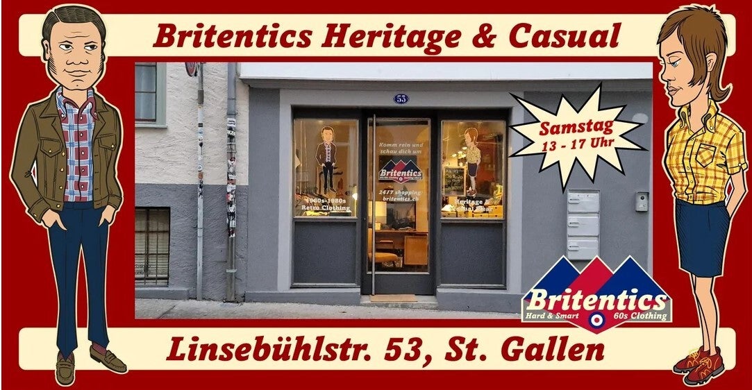 Britentics ist dein Laden für britische Subkultur in der Schweiz. Bei uns findest Du die Klassiker der 1960er bis 1980er-Jahre. Kleider für Strasse, Büro, Tanzfläche und Stehränge. Kleider für Subkulturgänger und stilvolle Individualisten.